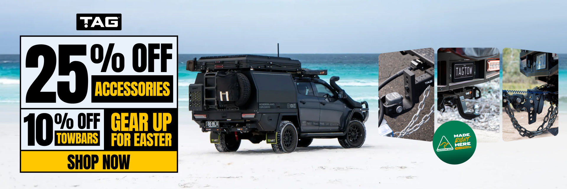 Each TAG Heavy Duty Towbar is stress-tested to exceed ADR62/01-02 towing requirements and rated to your vehicle's maximum towing capacity.